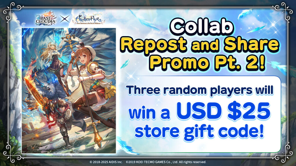 To celebrate this collaboration event, Last Cloudia will be holding a Repost and Share promotion!