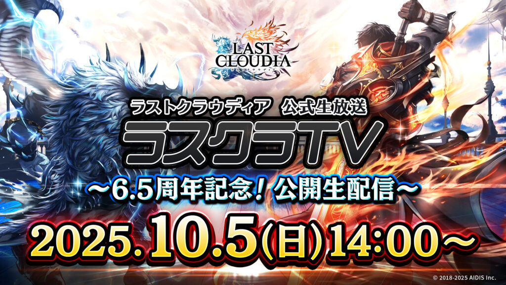 これを記念し、2025年10月5日(日)に「ラストクラウディア公式生放送 ラスクラTV~6.5周年記念!公開生配信~」の開催が決定いたしました!!