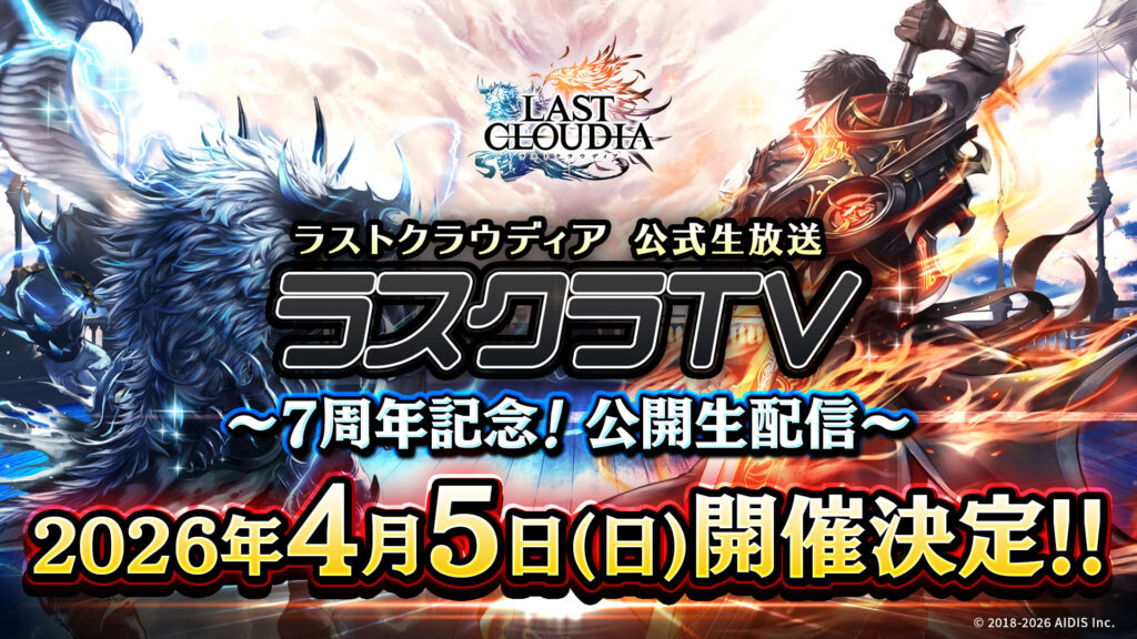 これを記念し、2026年4月5日(日)に「ラストクラウディア公式生放送 ラスクラTV~7周年記念!公開生配信~」の開催が決定いたしました!!